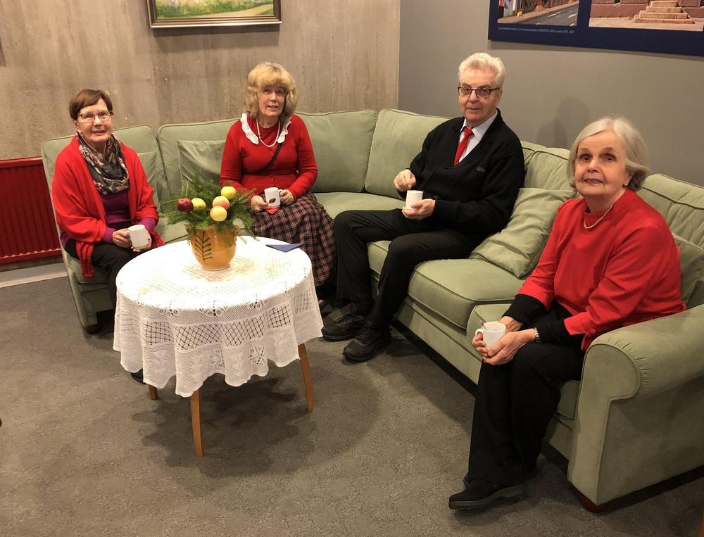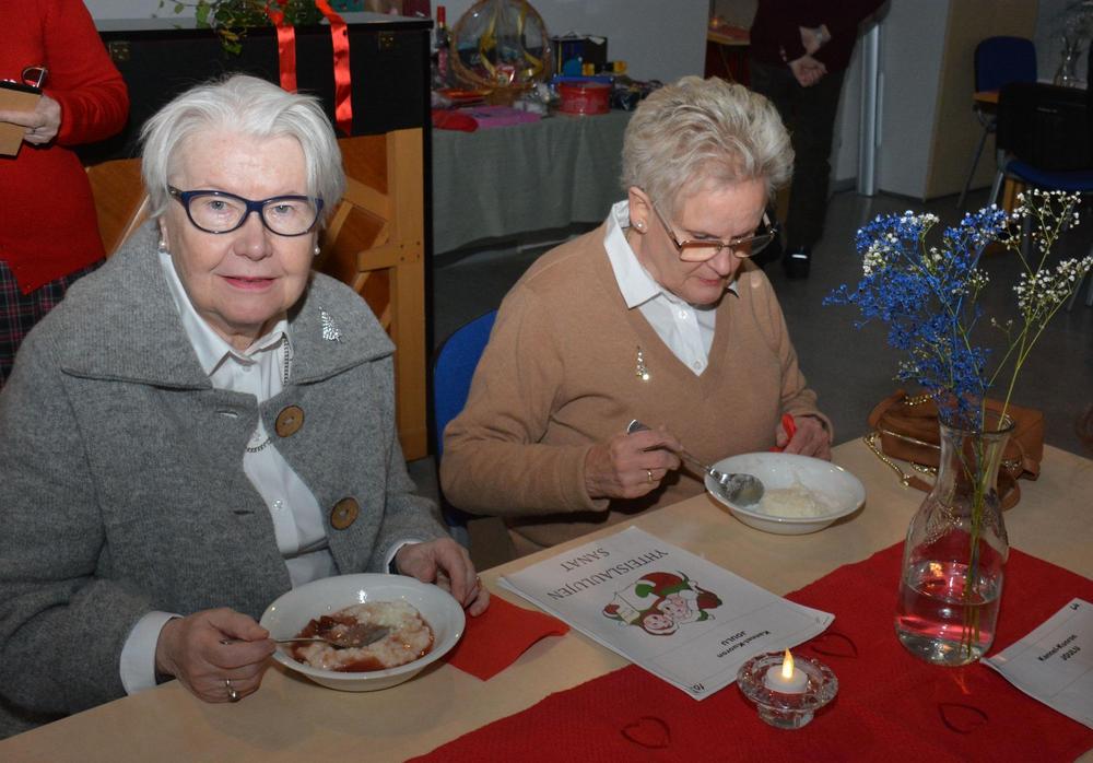 Jälleen oli tarjolla kystä kyllä. Kuultiin Kannelkuoron jouluisia sävelmiä ja laulettiin Lassin johdolla reippaasti joululauluja. Emäntä Terttu oli loihtinut tarjolle herkullista riisipuuroa ja rusinasoppaa sekä glögiä ja pipareita. Runsas arpajaispöytä suorastaan notkui voittoja onnekkaille.