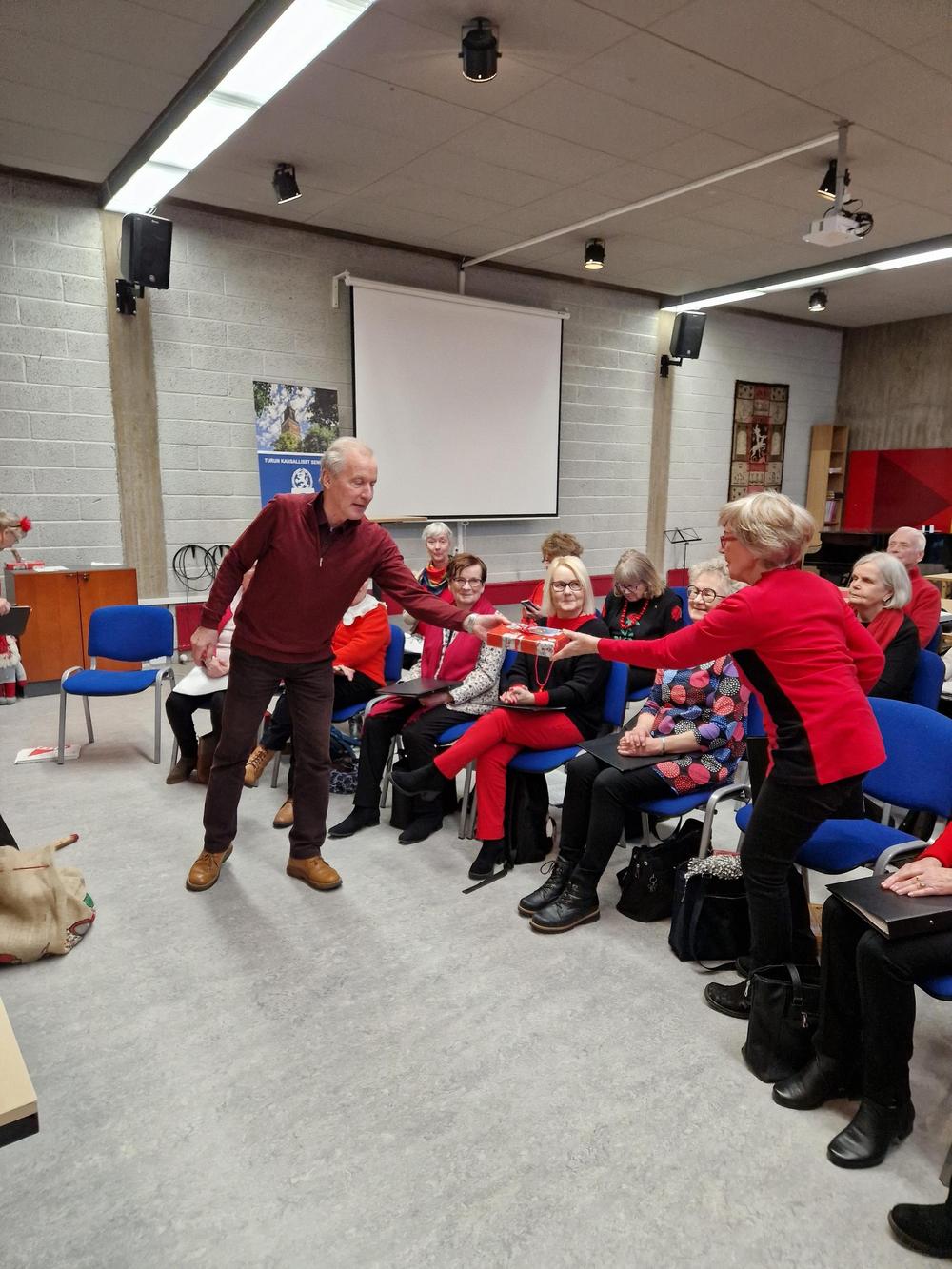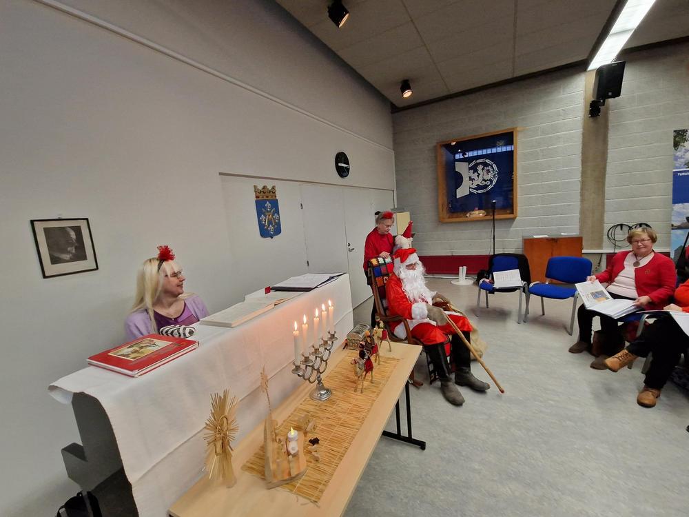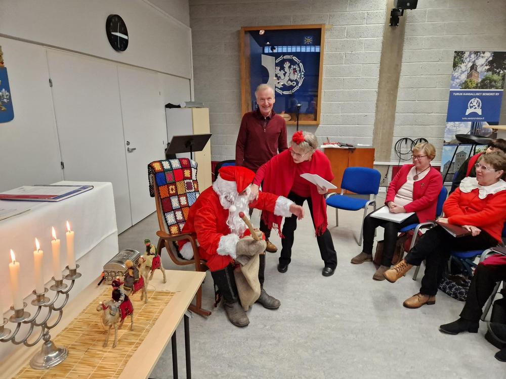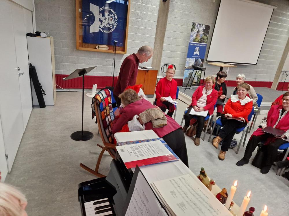 Kun jouluinen vieras oli jatkanut matkaansa, olivat vuorossa kiitokset taiteelliselle johtajallemme Tiinalle, kuoronjohtajalle Riitalle sekä Terttu-emännälle, samoin kuin toimikunnalle. Yhteinen kynttiläpiiri ja Maa on niin kaunis kuuluvat puurojuhlamme perinteeseen. Ja tietysti vielä joulukahvit.