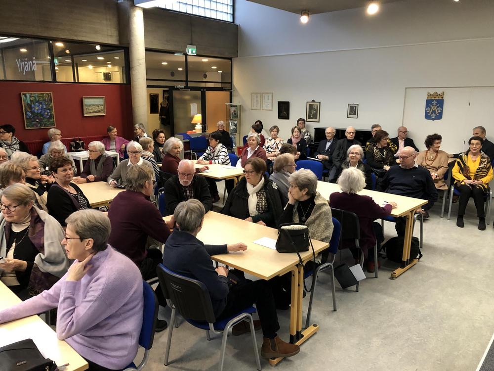 Lasse Vahtola toimitti lämminhenkisesti vuoden siunauksen. Sitten kurkistettiin kevään monipuoliseen ohjelmatarjontaan ja kuultiin kerhojen kuulumisia sekä nautittiin trubaduuri Teuvo Mujon herkästä tunnelmoinnista. Salintäyteinen seniorijoukko sai kotiin viemisiksi hyvän mielen lisäksi uunituoreen Turkuset -julkaisun. Turkuset on tällä viikolla postitettu kaikille jäsenille.