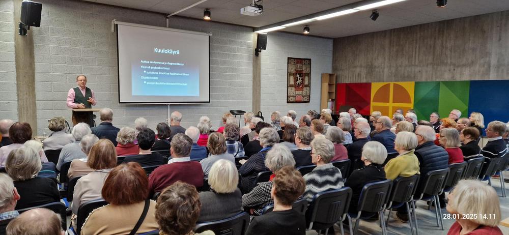 TI 28.1.2025 Senioritalo Yrjänän Tiistaitreffeille kokoontui yli 120 senioria kuuntelemaan professori Jaakko Pulkkista!