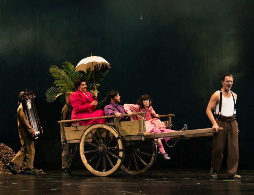 Kauppisen satiirinen teksti kuvaa surun ja epätoivon varjostamaa aikaa, mutta jostain kohoaa kaiken aikaa esille naurua. Katsoja saa nauraa, mutta joutuu herkeämättä miettimään, mille ja kenelle hän lopulta nauraa, hahmoille, toisille ihmisille vai itselleen?